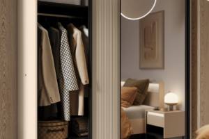 Dulap cu usi glisante TREND 200x222x63cm bej/ negru - oglinda
