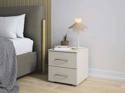 Set 2 noptiere cu 2 sertare BARCELONA 47x43x42cm alb alpin/ gri metalic