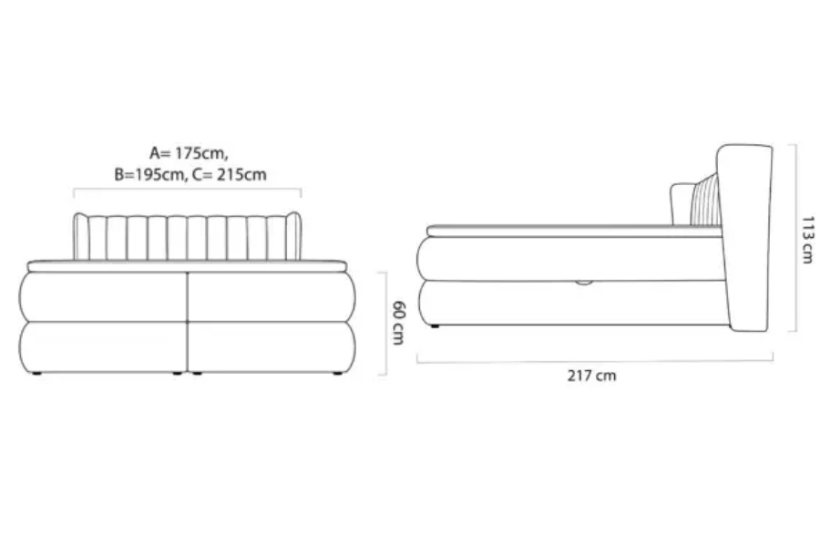 Latime totala: 175/ 195 / 215 cm