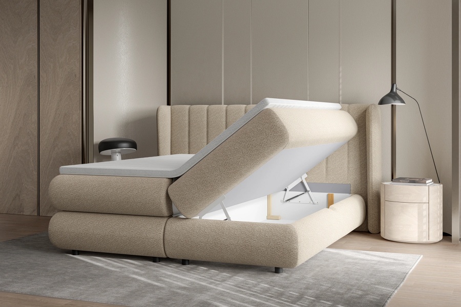 Pat Boxspring cu lada pentru depozitare ELISE 140/ 160/ 180cm personalizabil