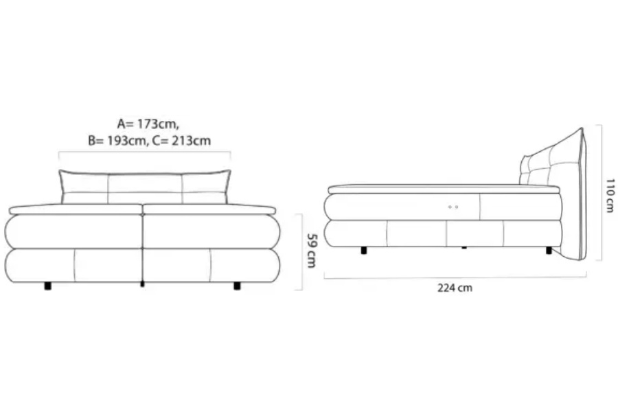 Latime totala: 173/ 193 / 213 cm