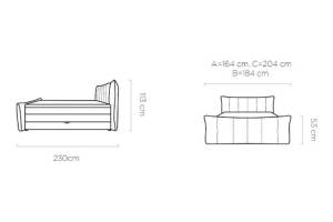 Latime totala:  164 / 184 / 204 cm