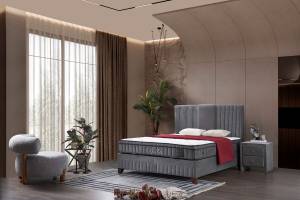 Pat tapitat cu saltea si spatiu pentru depozitare BELLA (160x200cm) grey