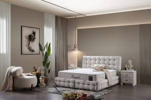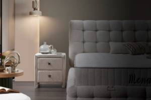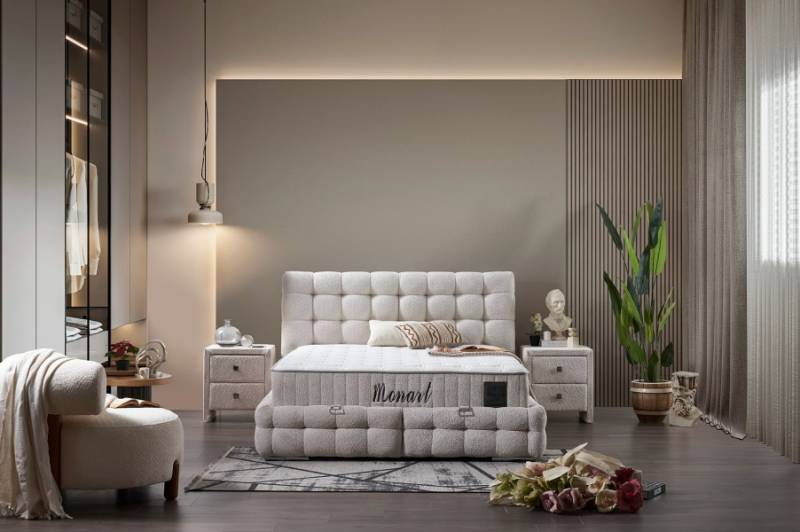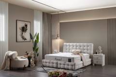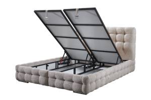 Pat tapitat cu saltea si spatiu pentru depozitare MONART (200x200cm) cream