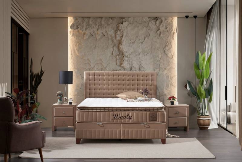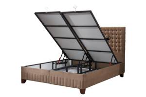 Pat tapitat cu saltea si spatiu pentru depozitare WOOLY (160x200cm) cappuccino