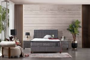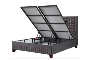 Pat tapitat cu saltea si spatiu pentru depozitare WOOLY (160x200cm) grey