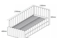 Pat tapitat cu somiera si pat suplimentar ALFIE RAVEN (120x200cm) material textil cappuccino