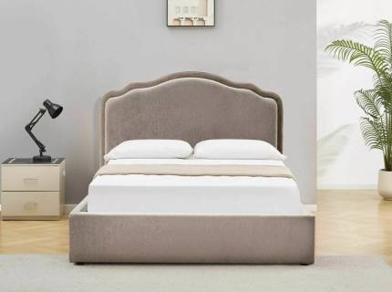 Pat tapitat cu somiera si sertare pentru depozitare BETINA (160x200cm) material textil grey