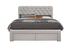 Pat tapitat cu somiera si sertare pentru depozitare MARISOL (160x200cm) catifea beige