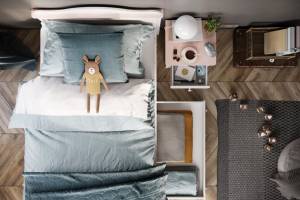 - cele 2 sertare pentru depozitare de sub pat sunt prevazute cu role