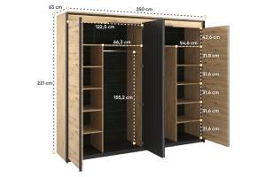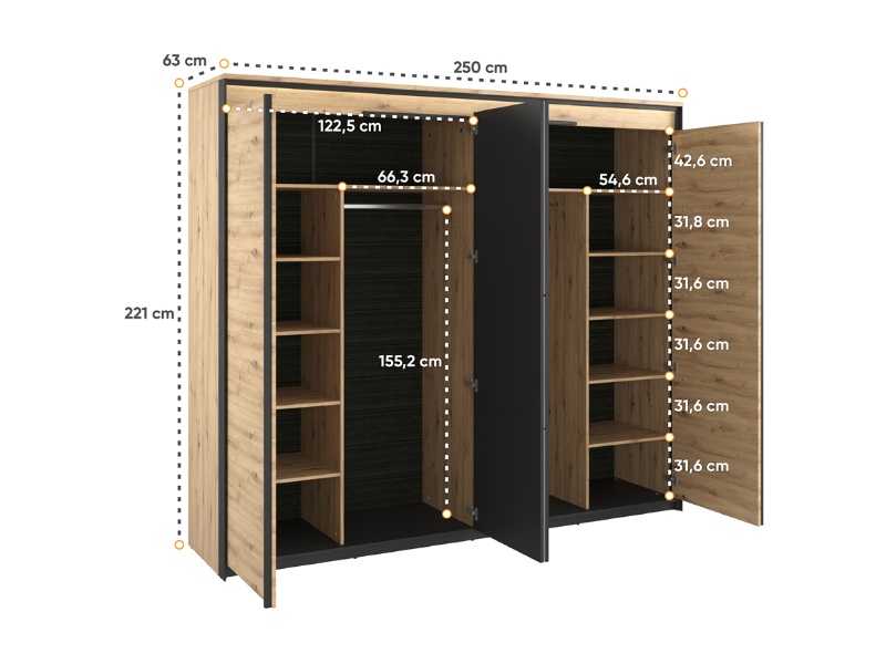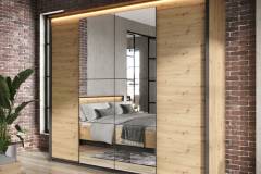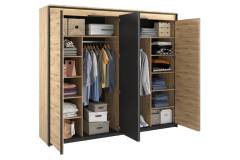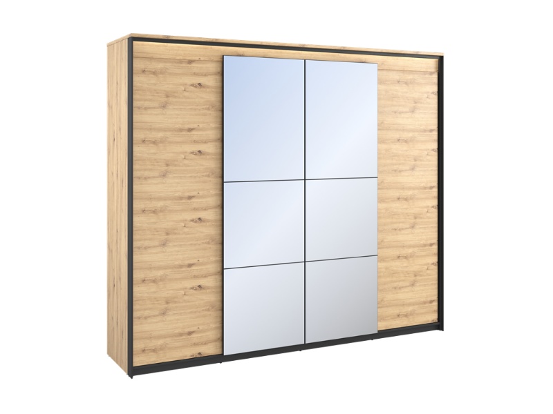- dulapul are 4 usi cu balamale, iar pe cele 2 usi din mijloc este oglinda