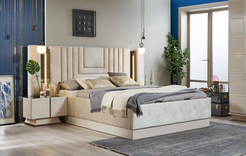 Patul este prevazut cu spatiu pentru depozitare tip lada si cu somiera (sistem de rabatare cu pistoane pe gaz)