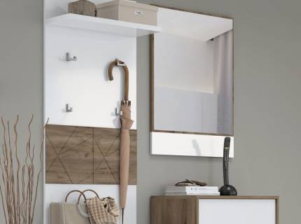 Dulap hol cu 1 usa STELA 63x197x36cm stejar tabac/ alb lucios