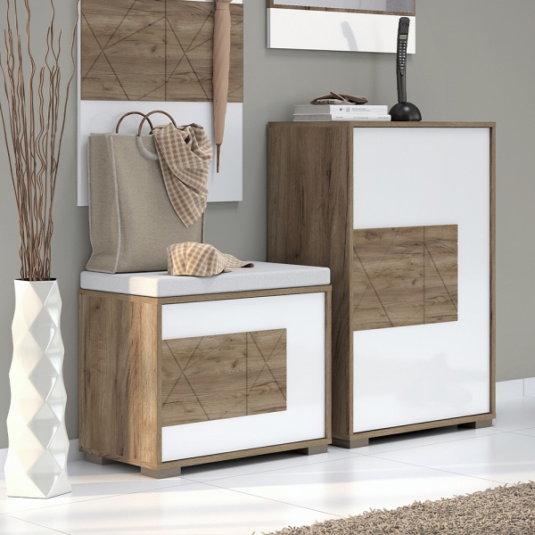 Banca cu 1 usa rabatabil STELA 63x48x36cm stejar tabac/ alb lucios