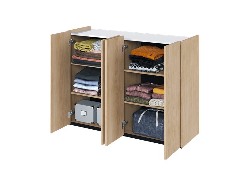 - standard comoda vine cu cate 2 polite per compartiment, in total 4 polite