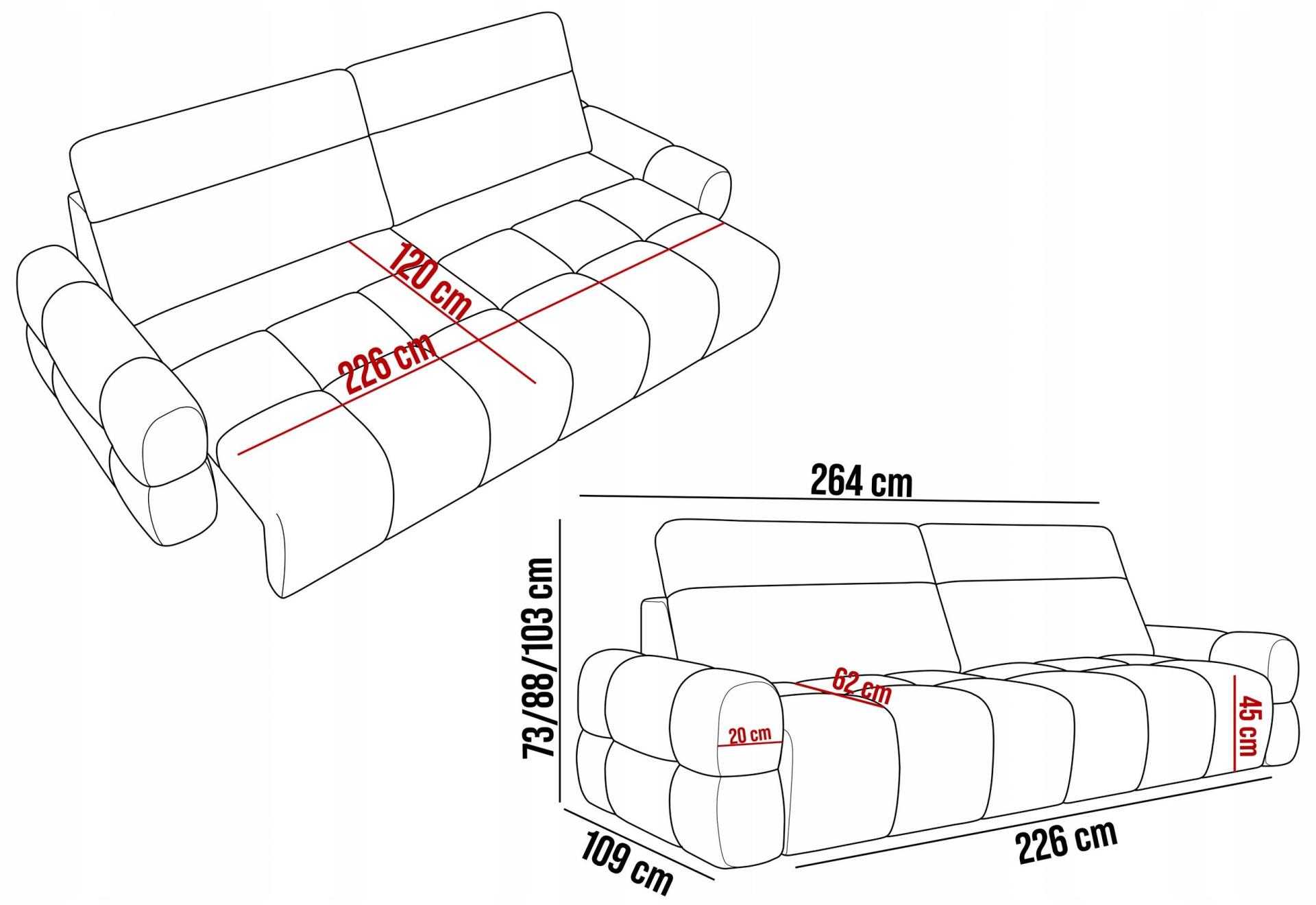 Canapea cu reglaj electric MATEO cu tetiere reglabile, extensie individuala, personalizabila 264x109cm