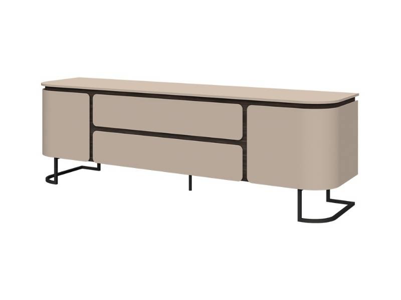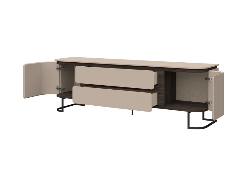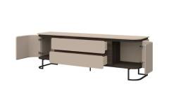 Comoda TV cu 2 usi si 2 sertare AURA 182x58x46cm mocca/ stejar Baroc, picioare antracit