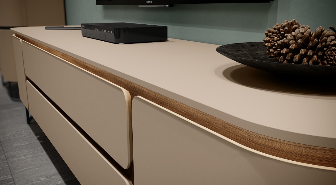 - Fronturi rotunjite din furnir de lemn natural lacuite (lac UV)