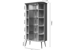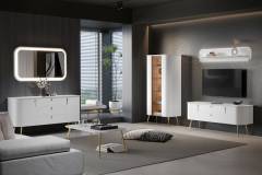 Vitrina cu 2 usi sticla Parsol GALET 91x179x47 cm alb mat, picioare si manere auriu neon