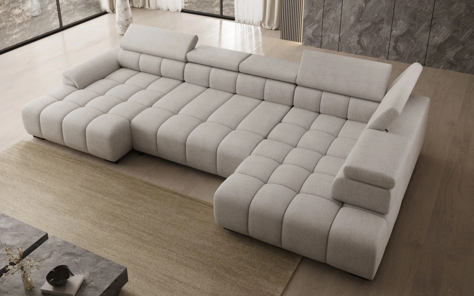 Coltar cu reglaj electric ALVIN XL cu tetiere reglabile, personalizabil 393x205x168cm
