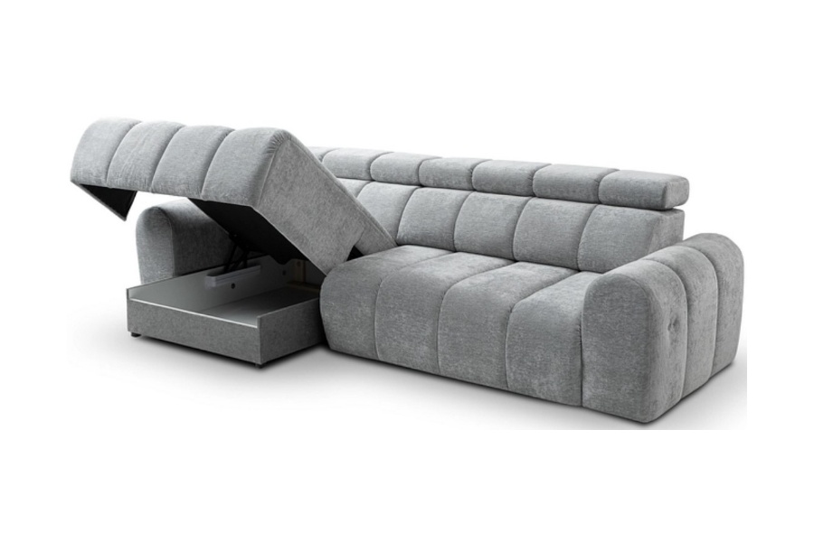 Coltar cu reglaj electric CORFU cu lada pentru depozitare, tetiere reglabile 290x152cm personalizabil