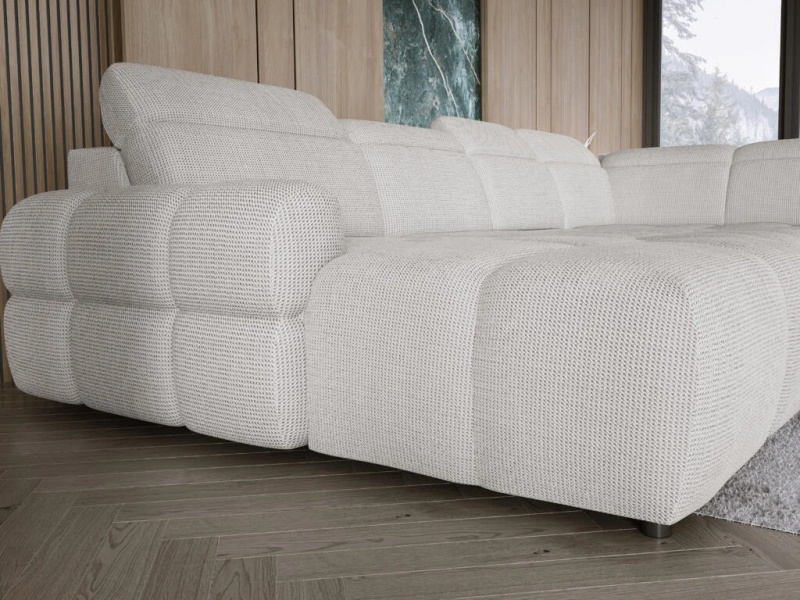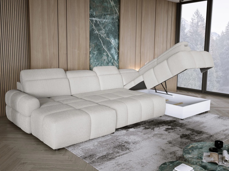 Coltar cu reglaj electric MATEO XL cu lada pentru depozitare, tetiere reglabile, personalizabil 358x223x183cm