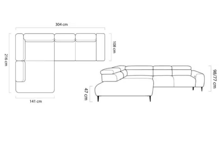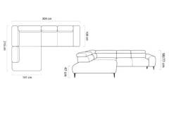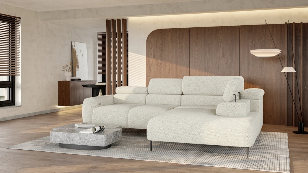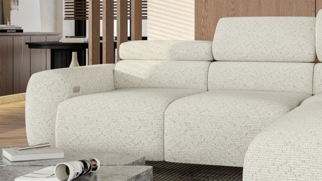 Coltar cu reglaj electric NALDO L cu tetiere reglabile, spatar ajustabil, personalizabil 304x216cm