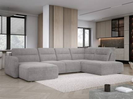 Coltar cu reglaj electric PLAZA XL cu tetiere reglabile, personalizabil 385x216x177cm