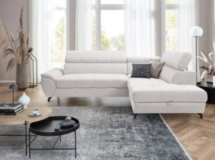 Coltar extensibil DENVO material textil gri, cu lada pentru depozitare, tetiere reglabile, spatar reglabil 290x217cm