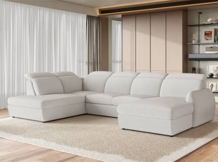 Coltar extensibil DENVO material textil gri, cu lada pentru depozitare, tetiere reglabile, spatar reglabil 290x217cm