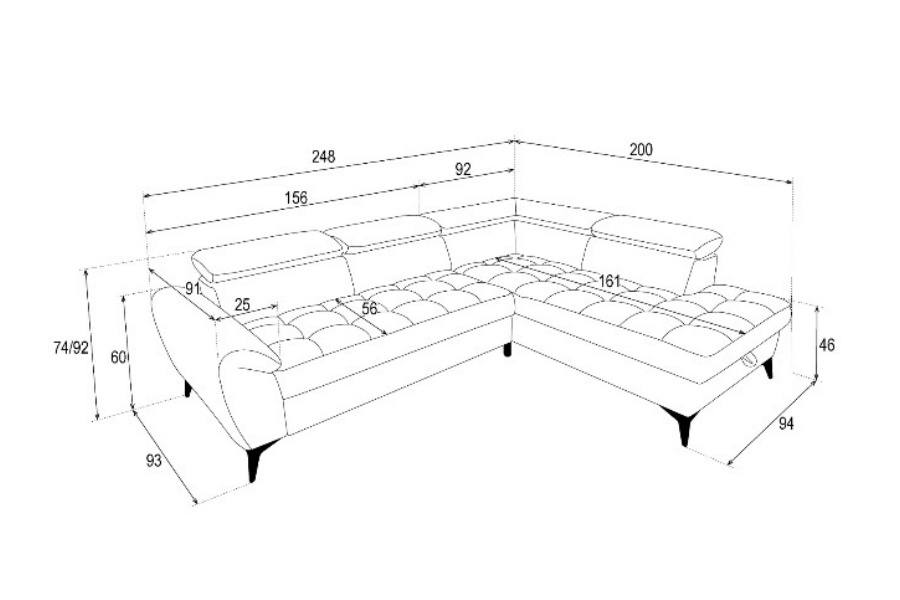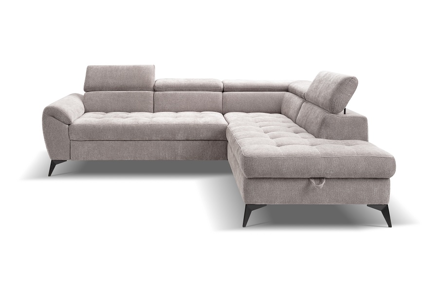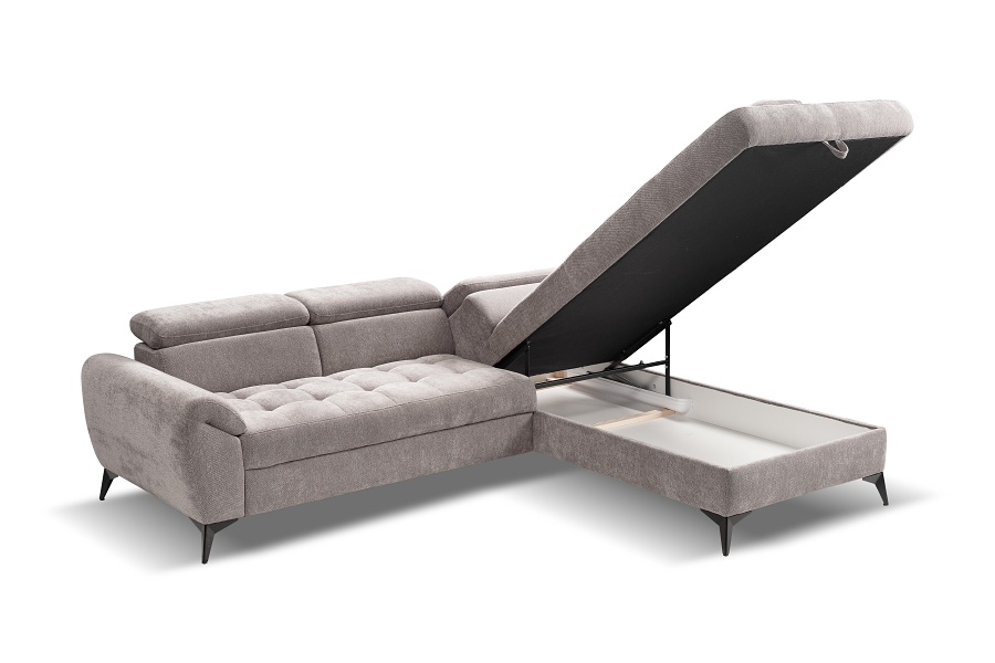 Coltar extensibil EDEN cu lada pentru depozitare, tetiere reglabile, personalizabil 248x200cm