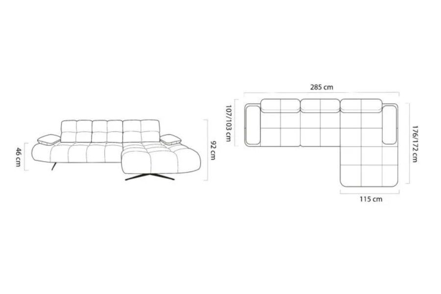 Coltar fix PRADO S cu spatar reglabil, cotiere reglabile, personalizabil 285x172/176cm