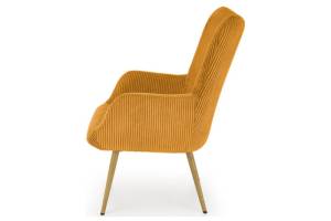 Fotoliu AMARO material plusat-raiat curry, picioare nuanta lemnului, design scandinav 70x80xH97cm