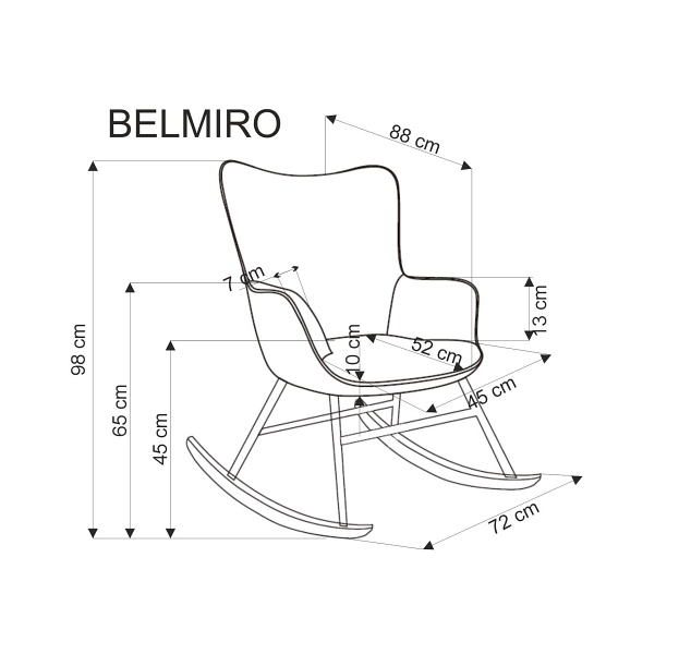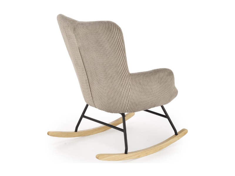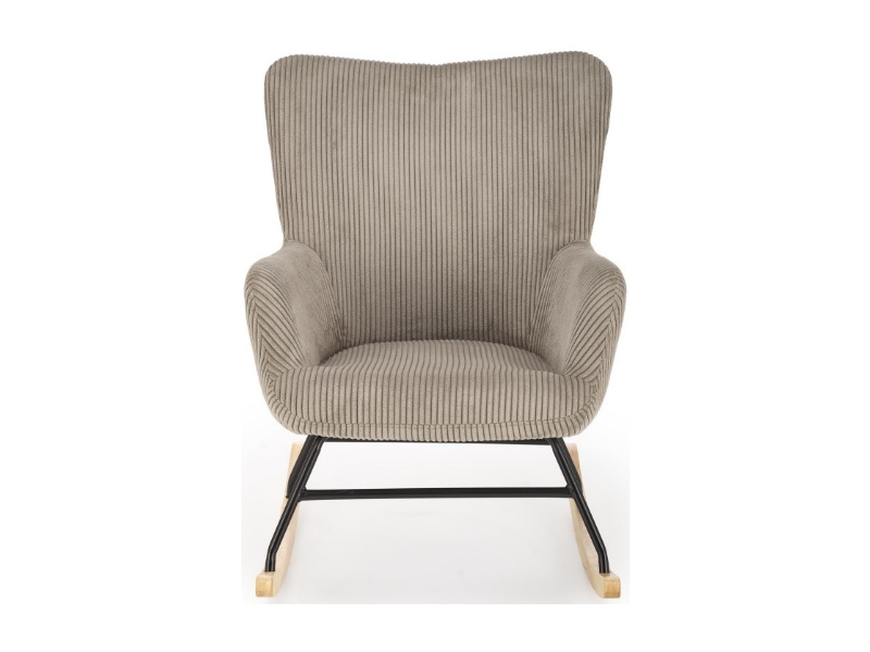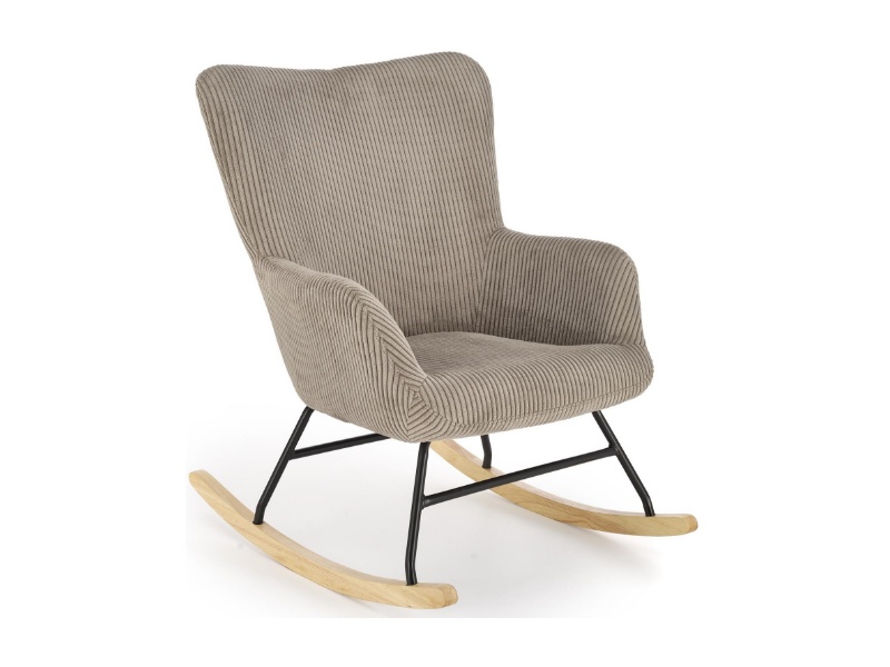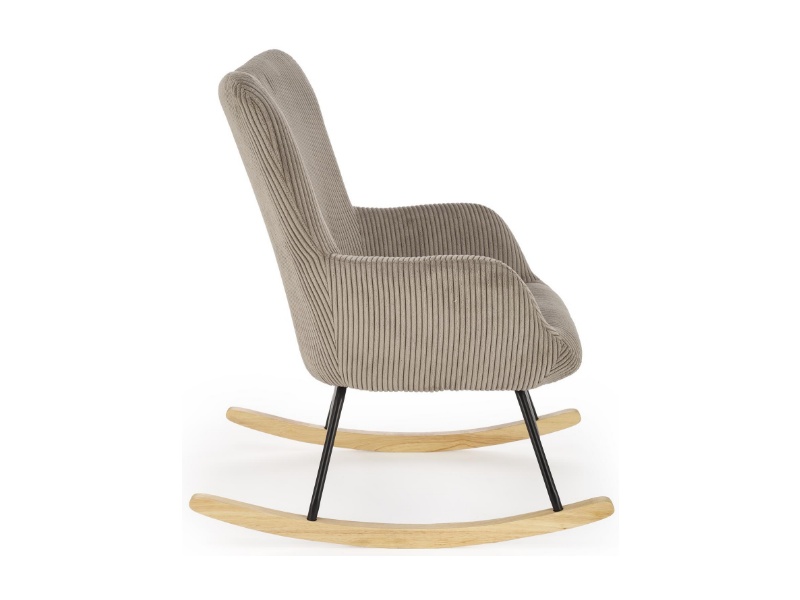Fotoliu BELMIRO cu functie de balansare, material plusat-raiat grey, picioare nuanta lemnului + negru