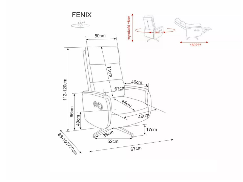 Fotoliu FENIX RAVEN rotativ cu recliner electric, material textil dark beige 67x83-160xH112-120cm