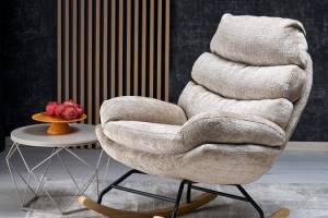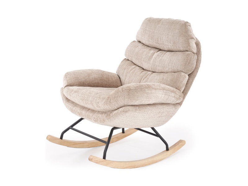 Fotoliu GIORGIO cu functie de balansare, material textil plusat beige, picioare nuanta lemnului + negru 75x108xH100cm
