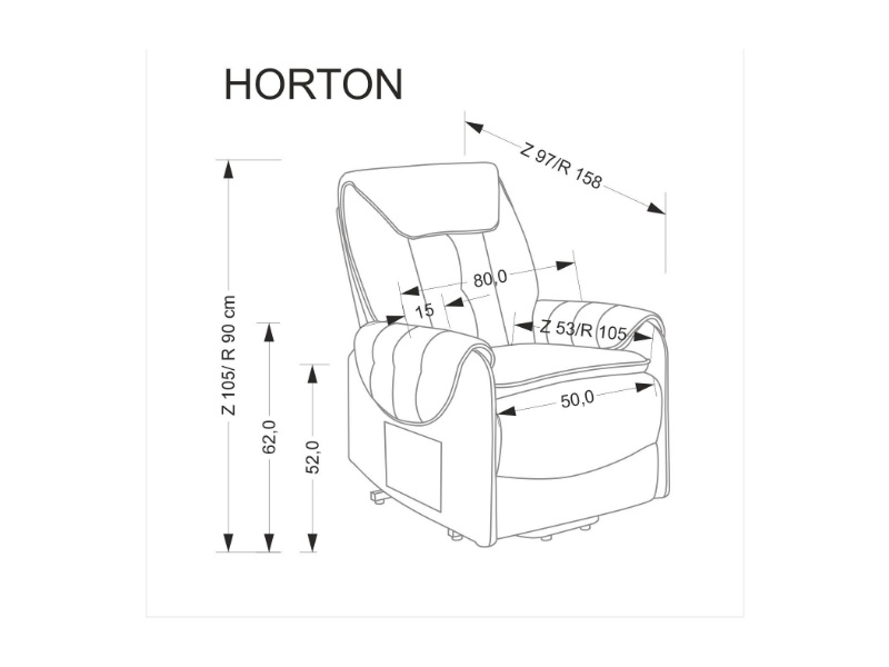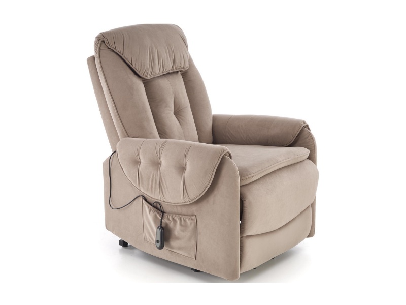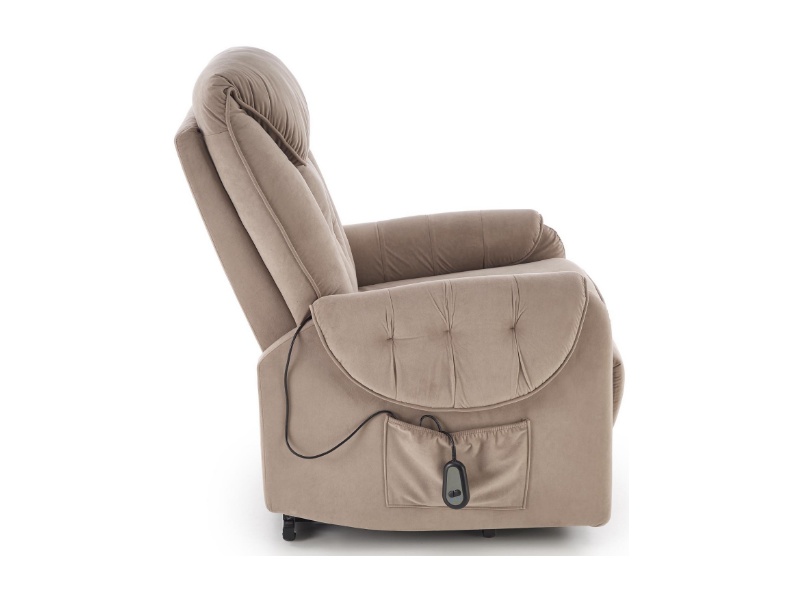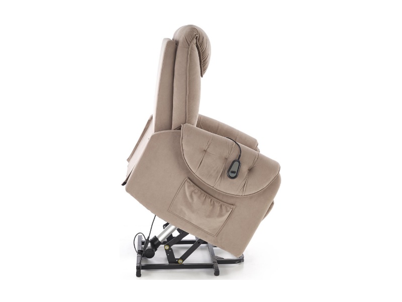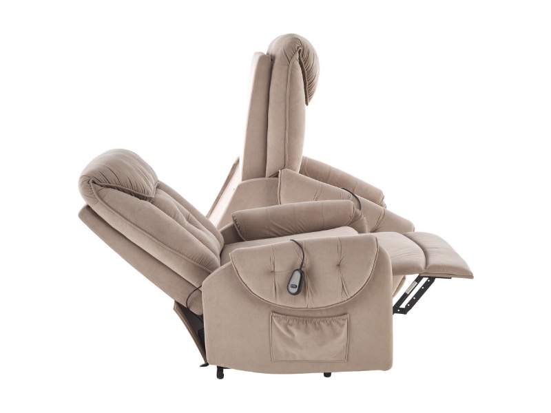 Alte specificatii: recliner electric cu actionarea prin telecomanda, buzunar lateral pt. telecomanda, functie de ridicare pentru pozitie verticala