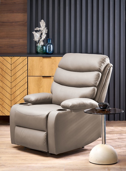 Fotoliu PERUS cu recliner, suport pentru pahare, ecopiele cappuccino 80x100-168xH80-101cm