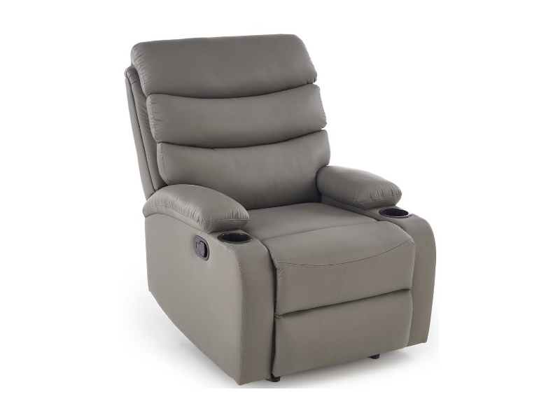 Fotoliu PERUS cu recliner, suport pentru pahare, ecopiele grey 80x100-168xH80-101cm