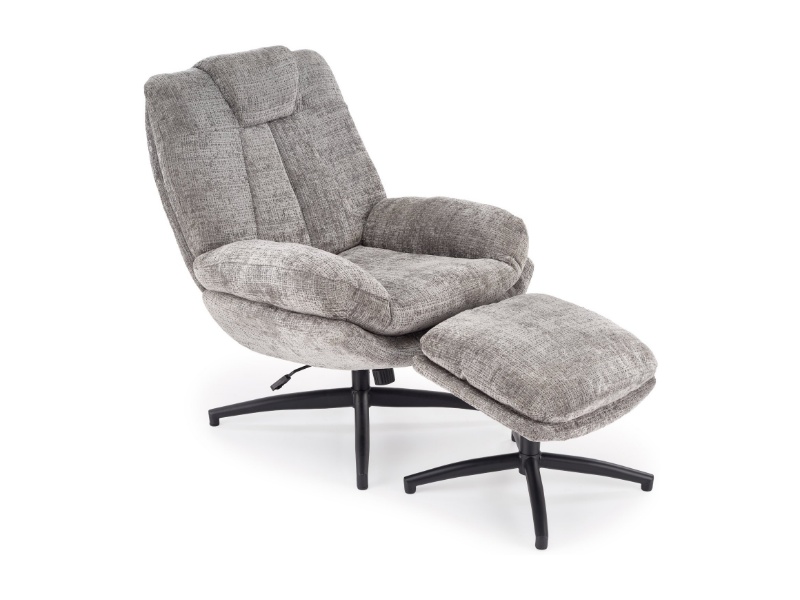 Fotoliu rotativ cu taburet DECLAN cu sistem de balasare, confortabil, material texil-plusat grey 75x42xH100cm