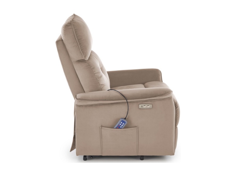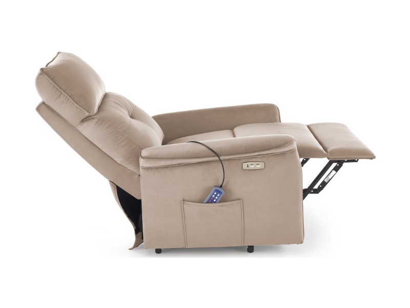 Fotoliu SEMIR 2 cu recliner electric, functie de masaj, port USB, buzunar pentru depozitare, confortabil, catifea beige 80x90xH108cm