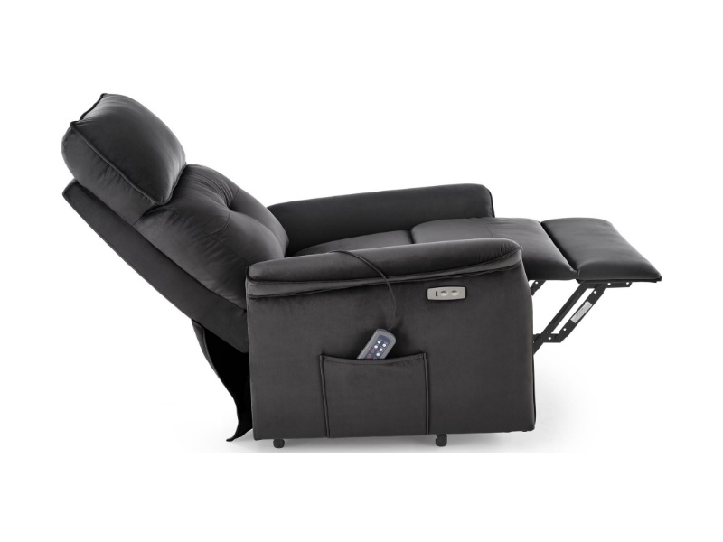 Fotoliu SEMIR 2 cu recliner electric, functie de masaj, port USB, buzunar pentru depozitare, confortabil, catifea black 80x90xH108cm