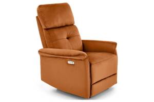 Fotoliu SEMIR cu recliner electric, port USB, confortabil, catifea cinnamon 80x90xH108cm