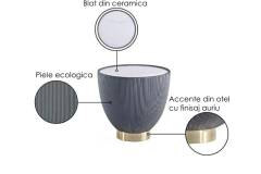 Culoare: efect de marmura alba/ ecopiele gri + auriu