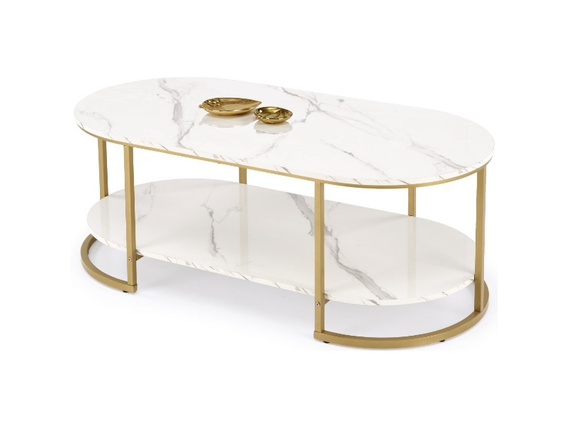 Masuta KALUA din MDF furniruit cu efect de marmura alba, otel auriu 120x60xH46cm