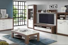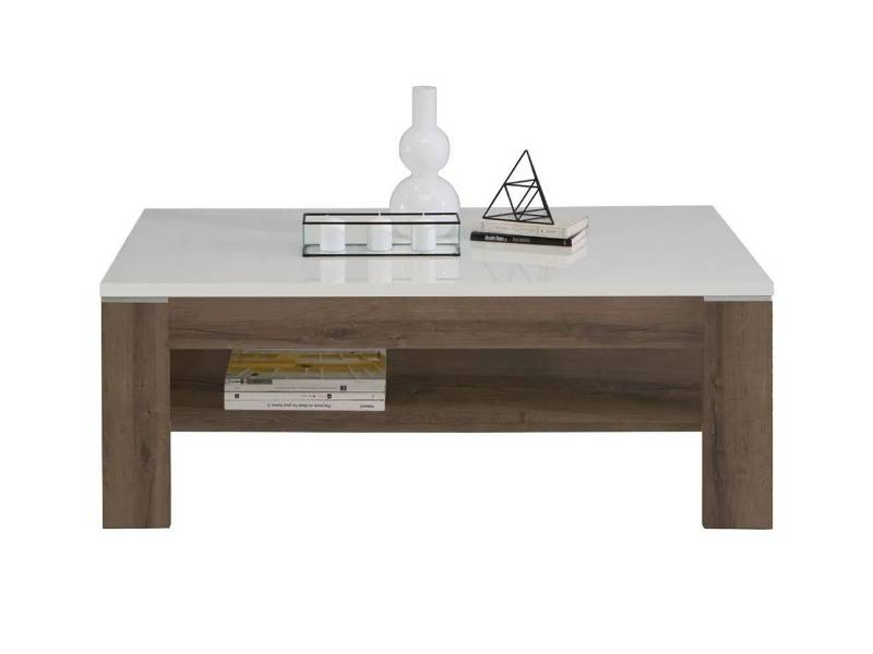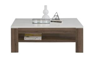 Masuta MAREY cu spatiu tip suport, din PAL stejar + alb lucios 120x75xH43cm