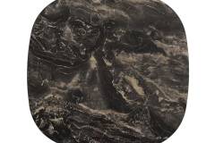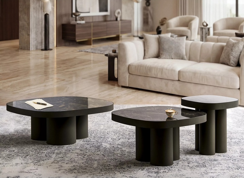 Masuta STELLA B din ceramica Spaniola Vulcano negru lucios, metal cupru 75x75xH43cm