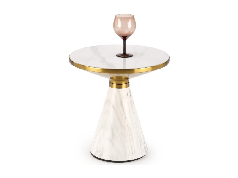 Masuta TALBI din otel sinterizat inoxidabil acoperit cu pulbere cu efect de marmura alba, auriu 50xH52cm