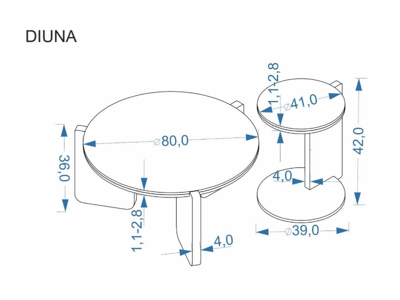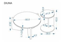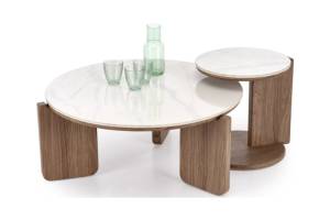 Set 2 masute DIUNA din MDF sinterizat furniruit cu efect de marmura alba/ nuc deschis 80xH36cm/ 41xH42cm