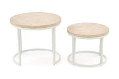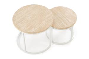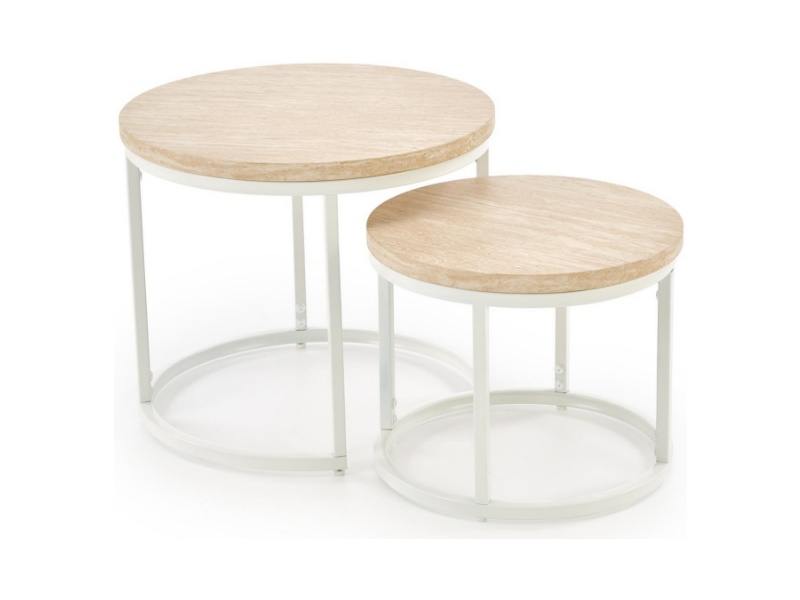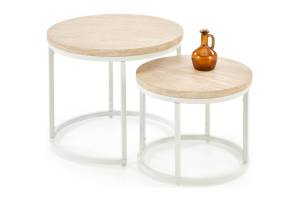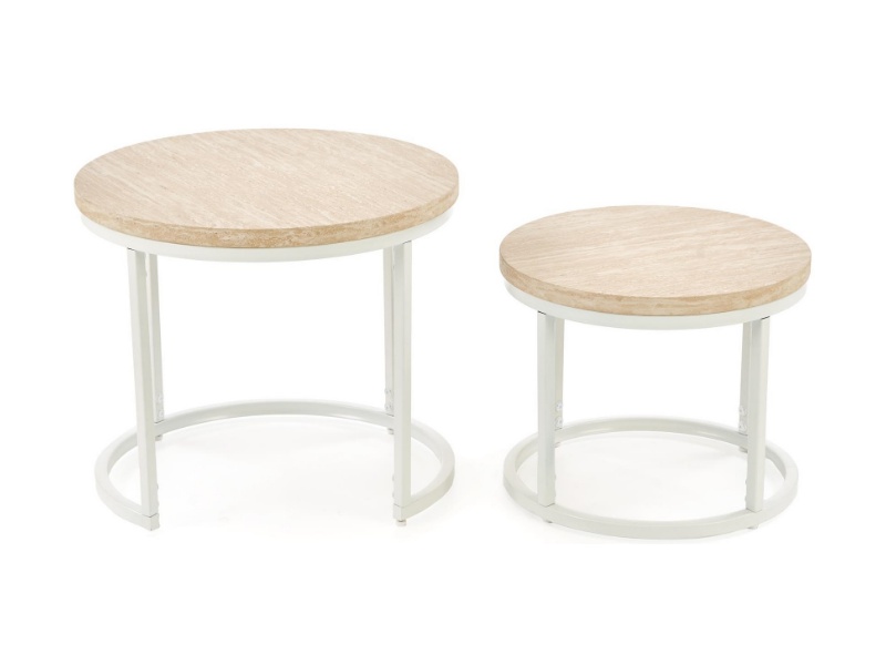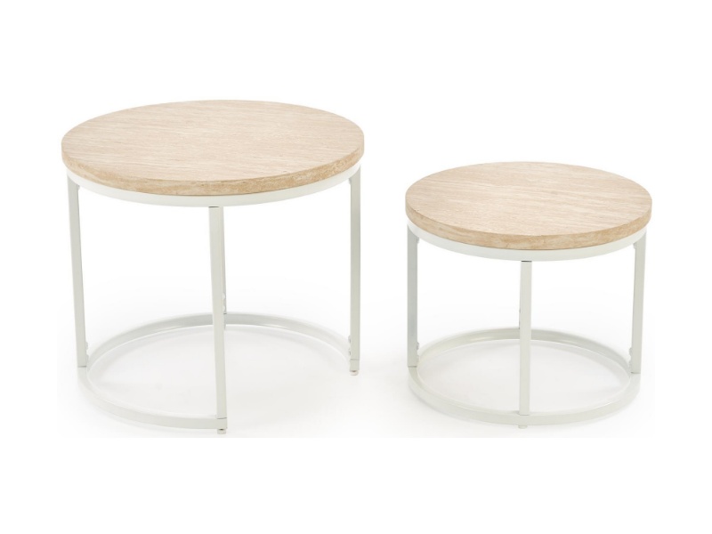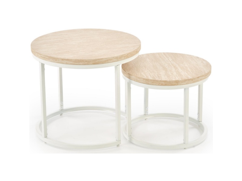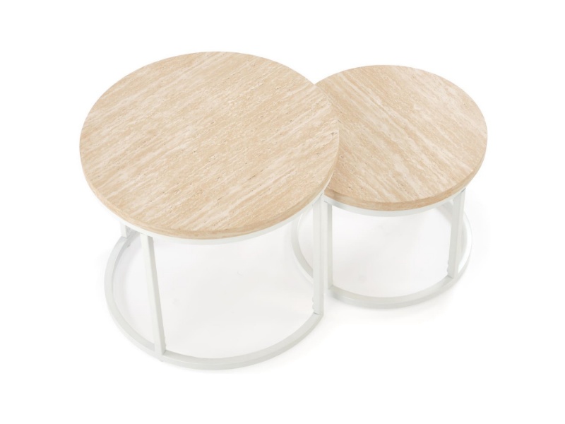 Set 2 masute OREO TRAVERTIN din MDF furniruit travertin, otel vopsit in camp electrostatic alb 53xH45cm / 43xH35cm